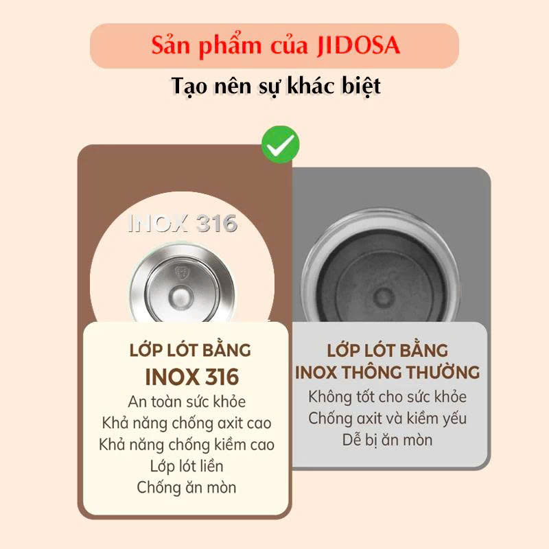 Đánh giá Bình Ủ Cháo JIDOSA JD3870 Inox 316 – Giữ Nóng 24H | 850ml