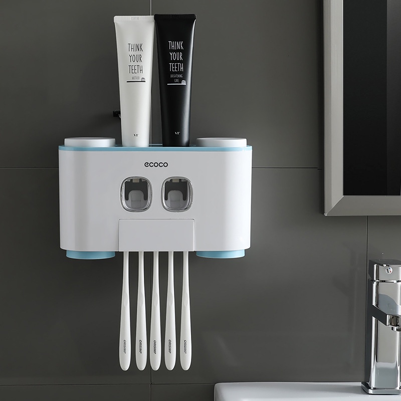 Bộ Nhả Kem Đánh Răng Cao Cấp 04 Cốc ECOCO E1802 Dán Tường Tiện Lợi