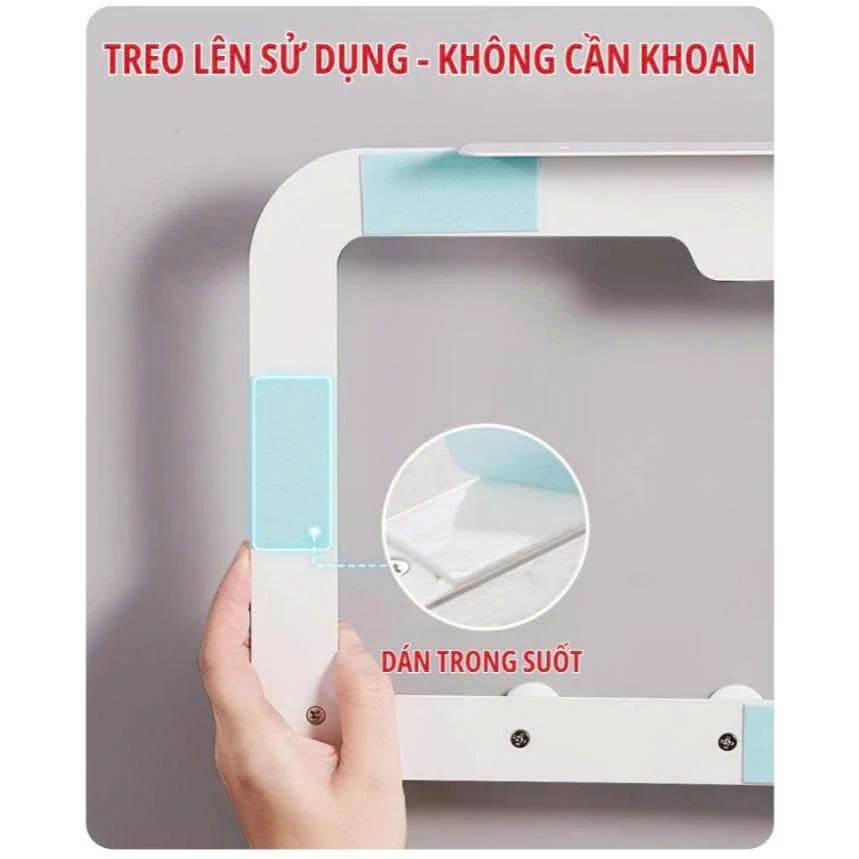 – Thiết kế treo lên dễ dàng, không cần khoan tường, sử dụng miếng dán cố định trong suốt vô hình