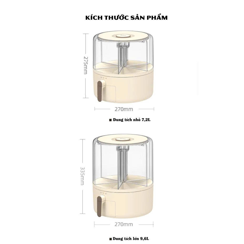 Loại 9,6L: chứa ~10kg | Ø 27cm | cao 33,5cm