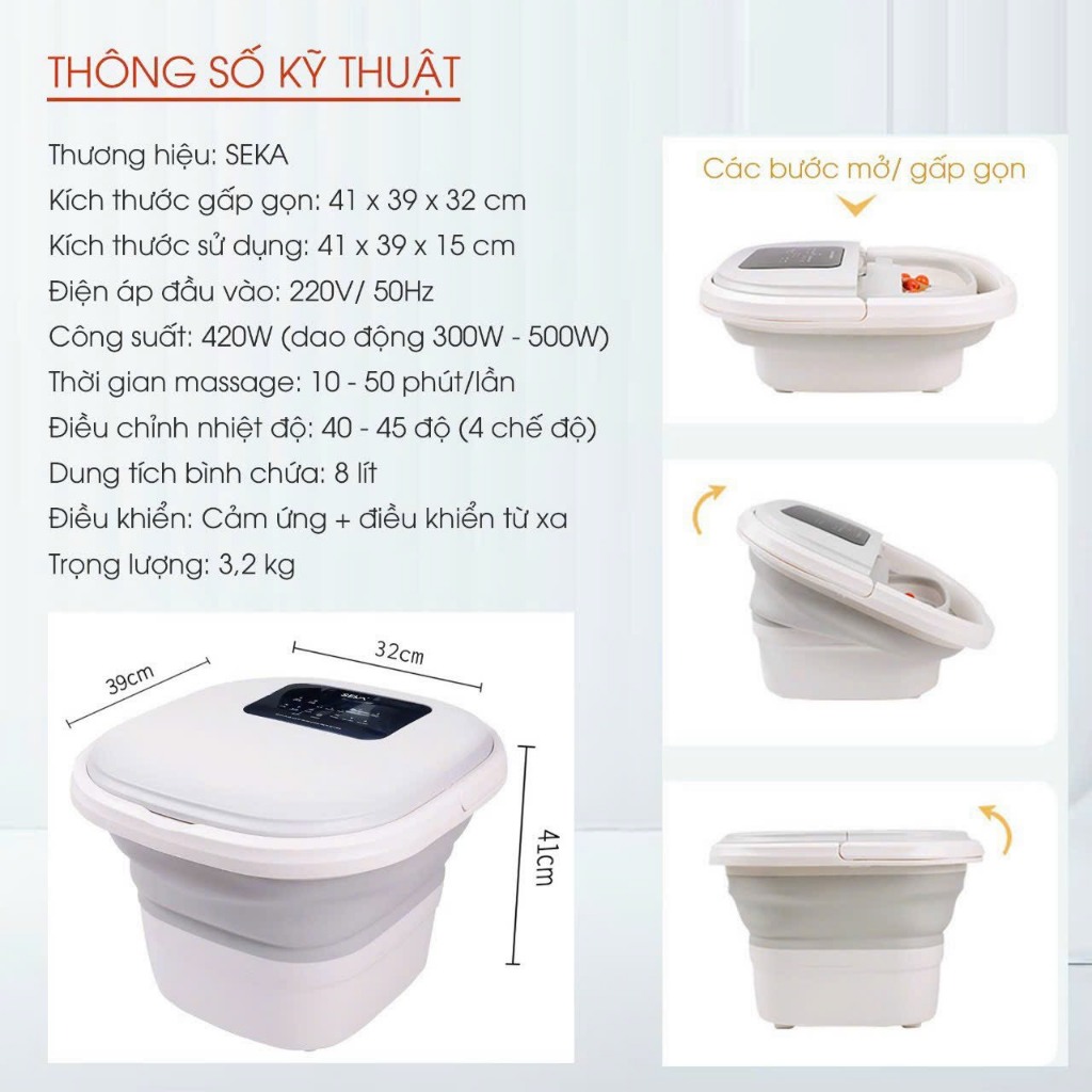 Bồn ngâm chân massage gấp gọn Seka giải pháp cho việc mát xa chân và ngâm chân nước nóng. Sản phẩm giúp tươi mới bàn chân, giảm stress và cải thiện giấc ngủ hiệu quả