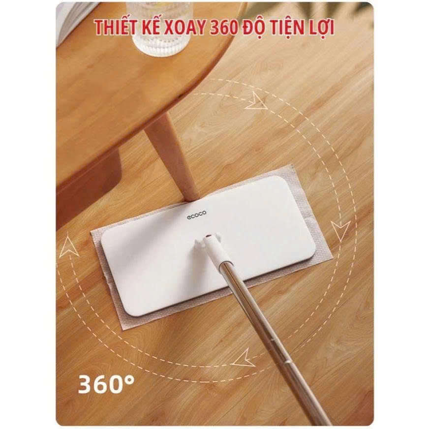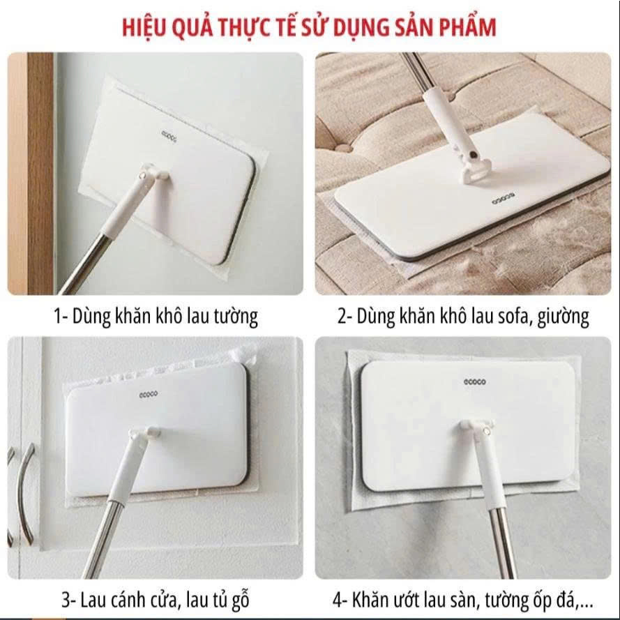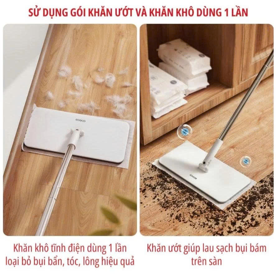 Cây Lau Nhà ECOCO E2225 XOAY 360 Độ, Tĩnh Điện, Khăn Lau Đa Năng Kháng Khuẩn Dùng Một Lần