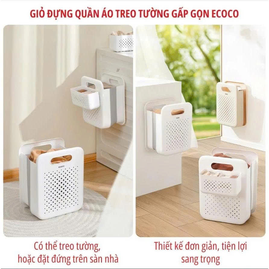 Giỏ Đựng Quần Áo Dán Tường Gấp Gọn ECOCO E24188 Và E24190 Có Tay Cầm Tiện Lợi
