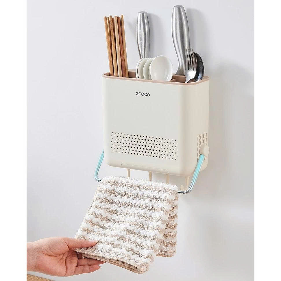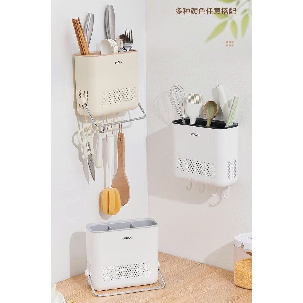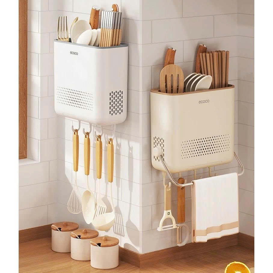 Hộp Đựng Đũa Thìa Dao ECOCO E2406-E2432 Tích Hợp Khay Hứng Nước, Móc Treo Đồ Thông Minh
