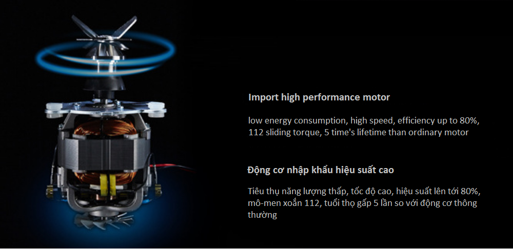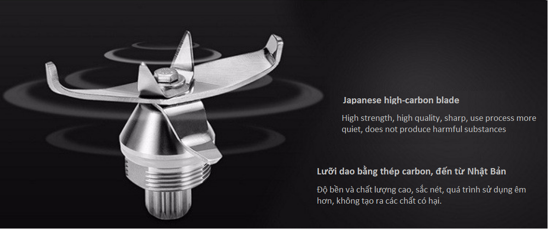 Phần dao là thép carbon được nhập từ Nhật Bản nên rất sắc bén và bền. Thiết kế 6 cánh phủ nhiều hướng nên vừa có chức năng xay, vừa có chức năng đảo