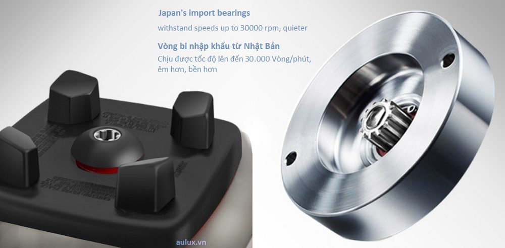 Với đặc thù máy công suất lớn, nên vòng bi phải là loại cực tốt nên máy mới chịu được, chính vì thế nên được nhập khẩu từ Nhật Bản. Chất liệu inox 304 cao cấp, do được làm từ Nhật Bản nên chịu được tốc độ 30000 vòng/phút và rất êm khi vận hành