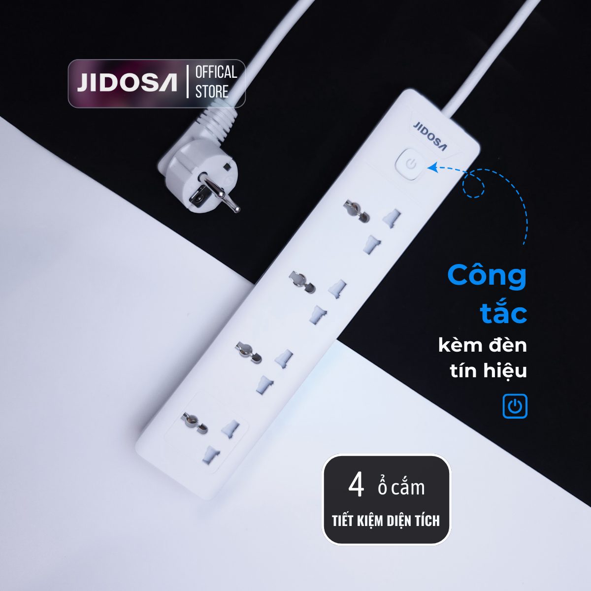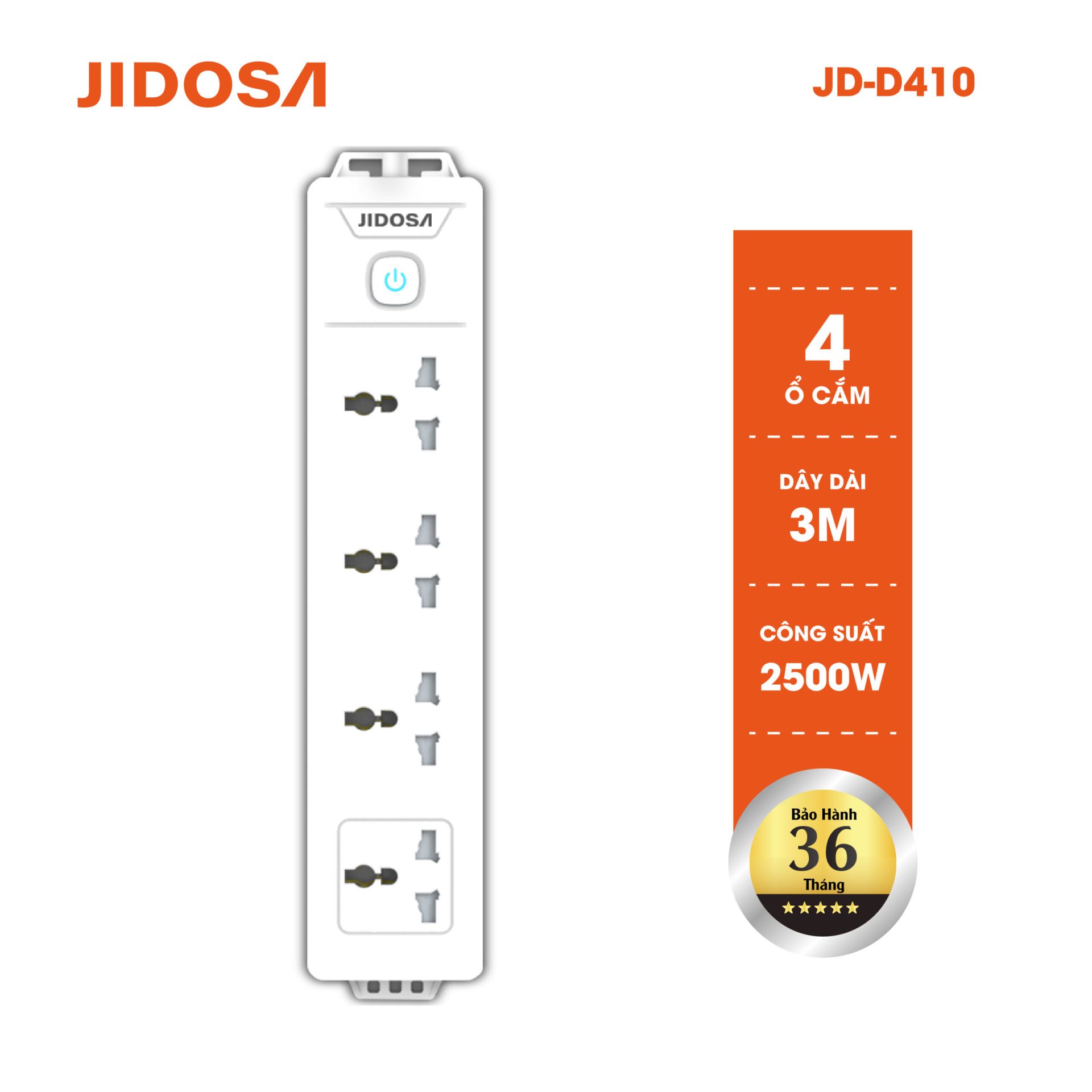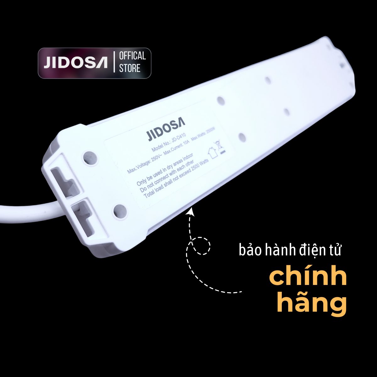 Ổ Cắm Điện Đa Năng Nhiều Lỗ Dẹt JIDOSA JD-D410 Công Suất 2500W Lõi Chống Giật Cửa Bảo Vệ Dây Dài 3m