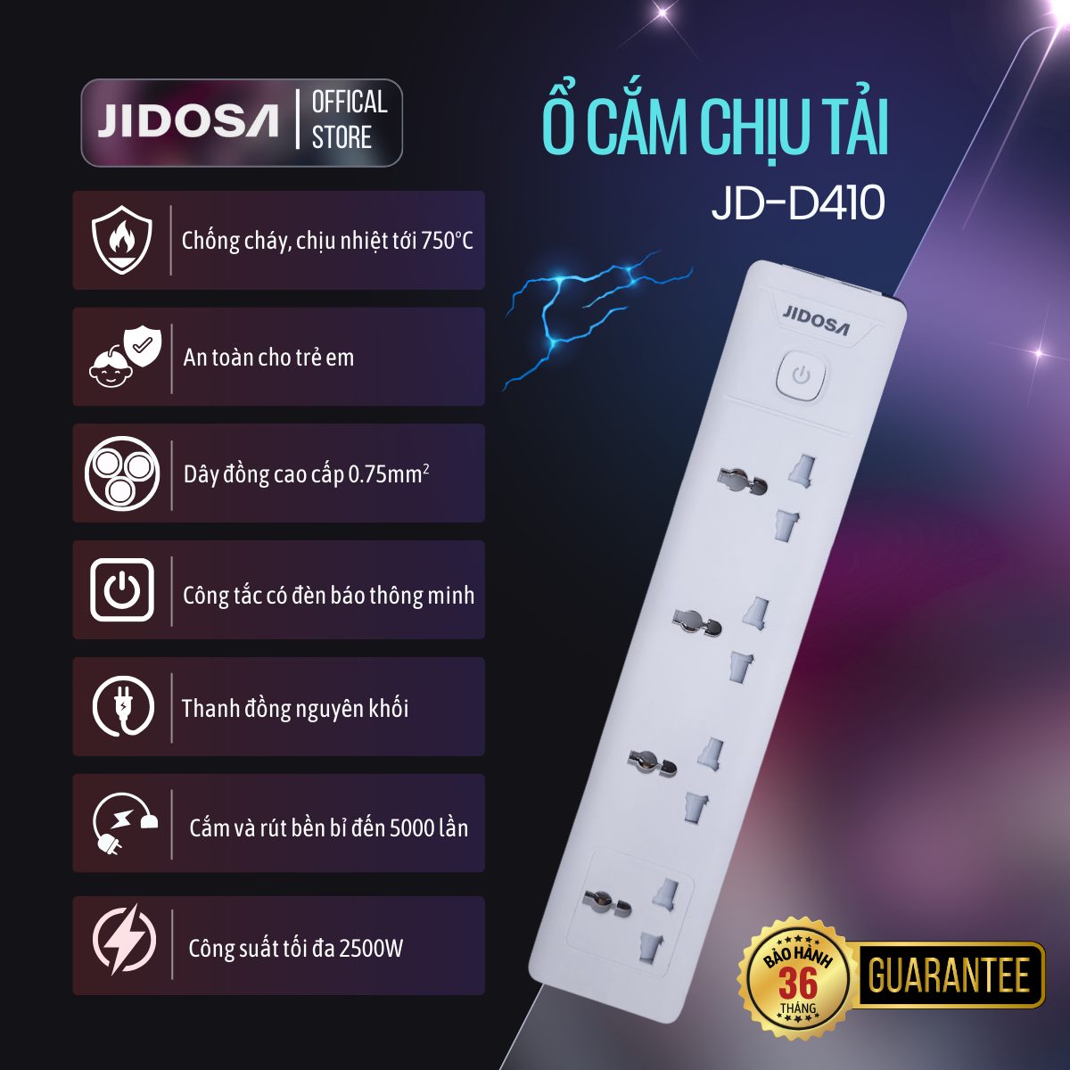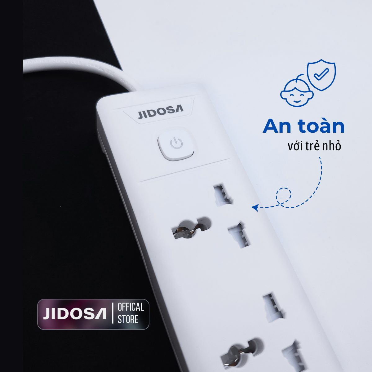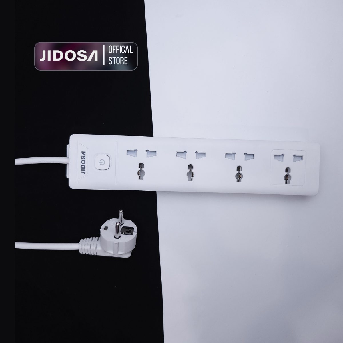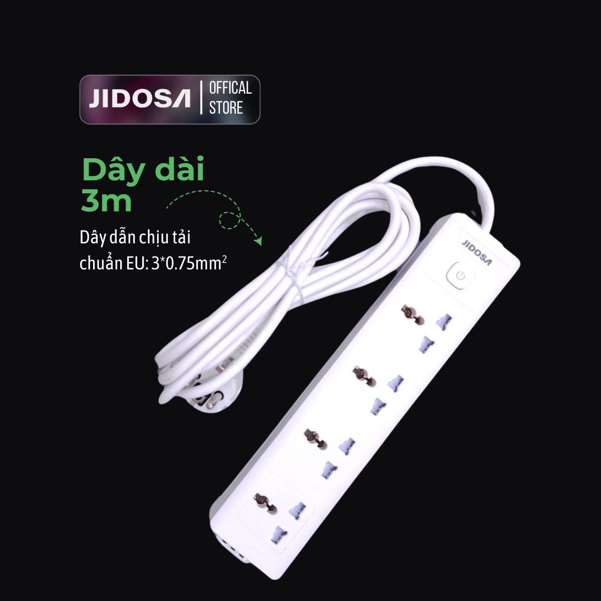 Ổ Cắm Điện Đa Năng Nhiều Lỗ Dẹt JIDOSA JD-D410 Công Suất 2500W Lõi Chống Giật Cửa Bảo Vệ Dây Dài 3m