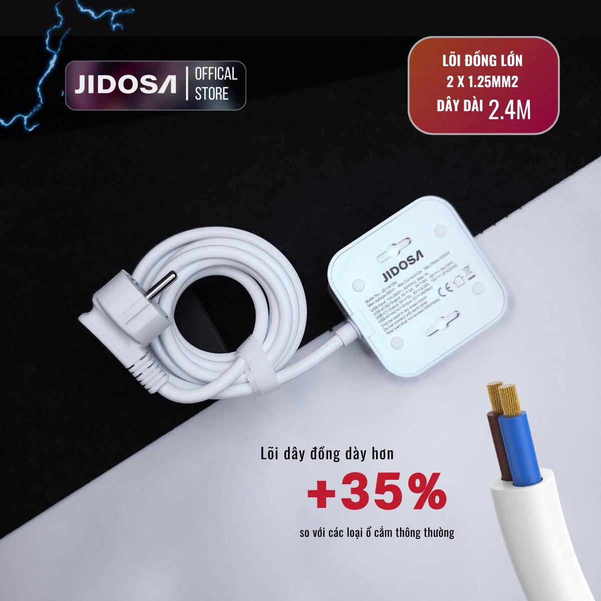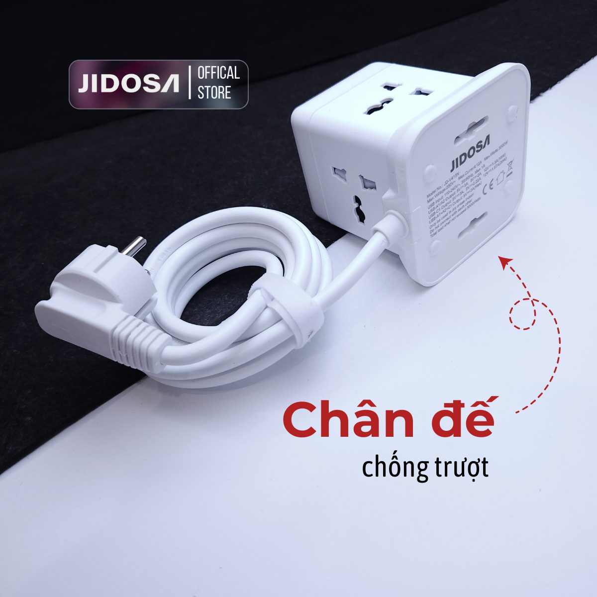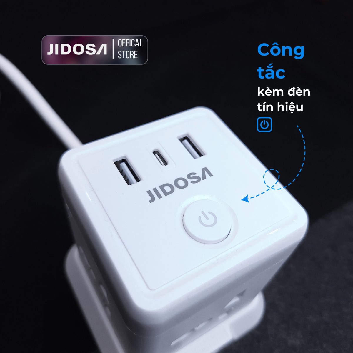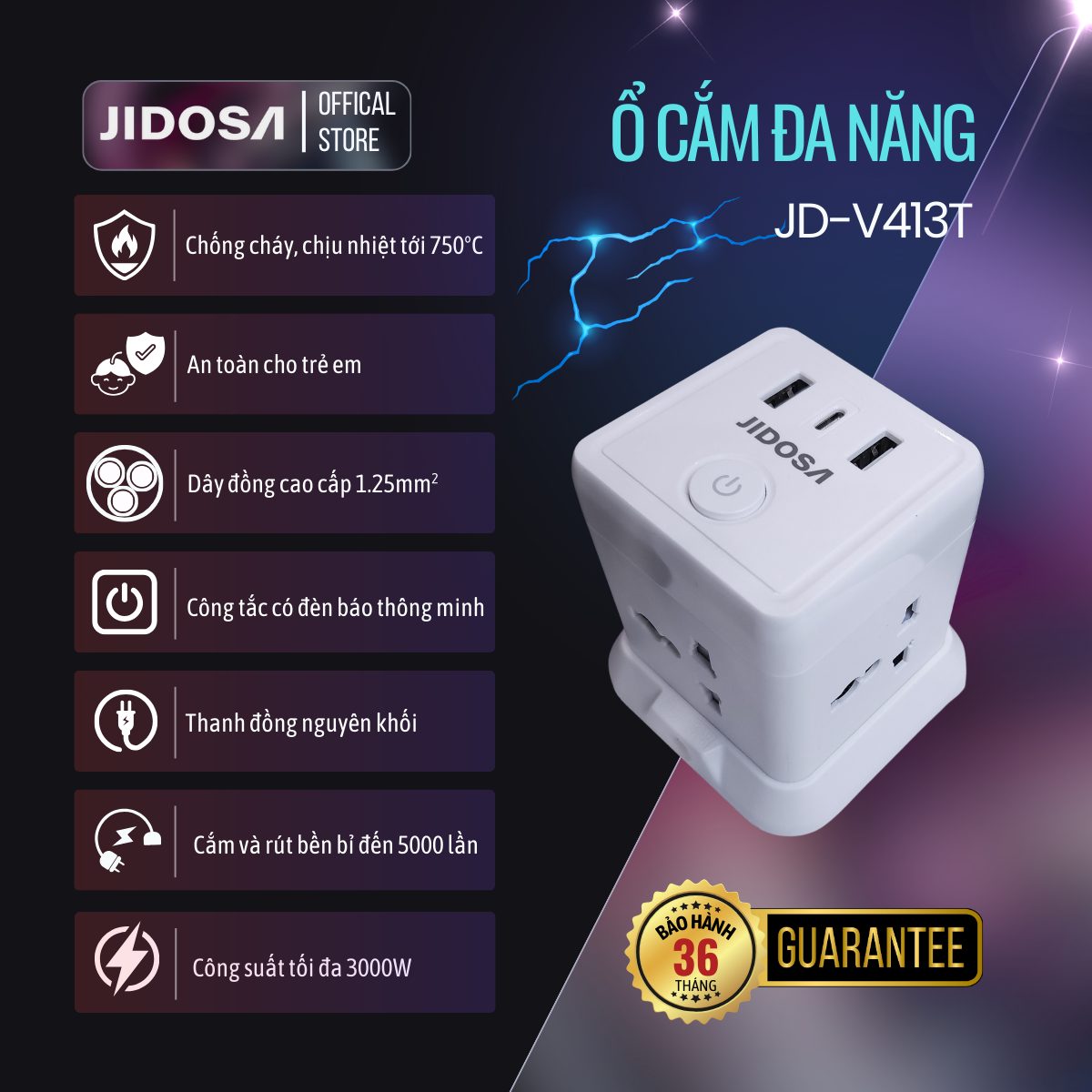 Ổ Cắm Điện Đa Năng nhiều lỗ cắm hình tháp JIDOSA JD-V413T Chịu Tải 3000W USB+ Type C 4 ổ dây 2.4m